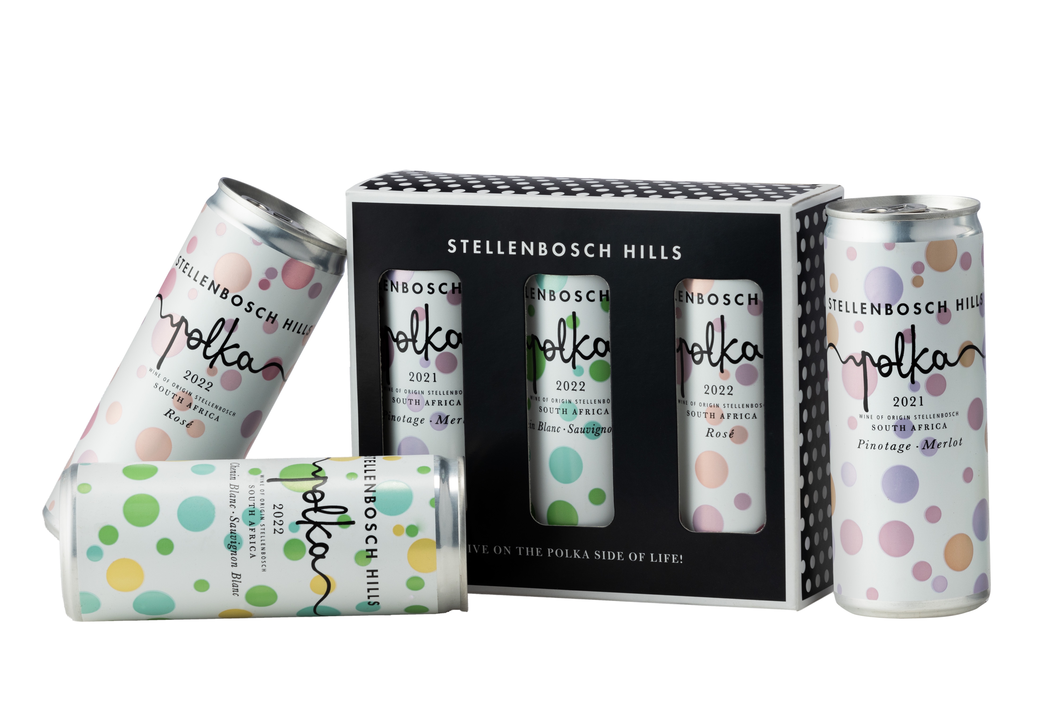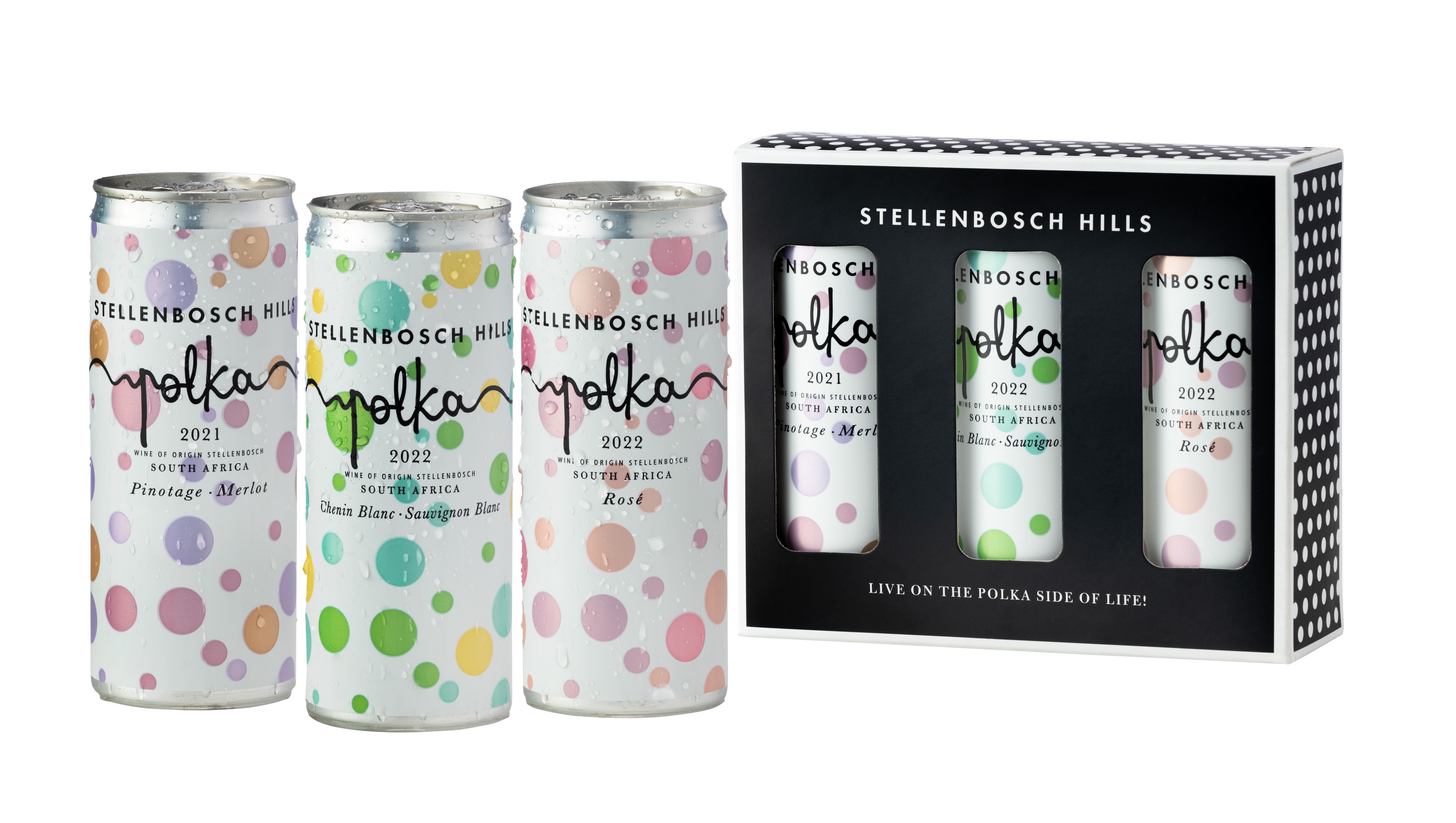 Stepping out with wine just became a whole lot easier thanks to Polka, the snappy new cousin of the easy-drinking, fun-loving Polkadraai range by Stellenbosch Hills. Polka is itself a range of quality wines but packaged in convenient 250ml cans.