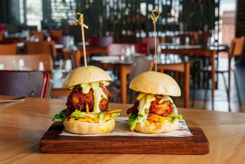 - Fish Sliders dressed with Mojo Dressing and Miso Mayo.