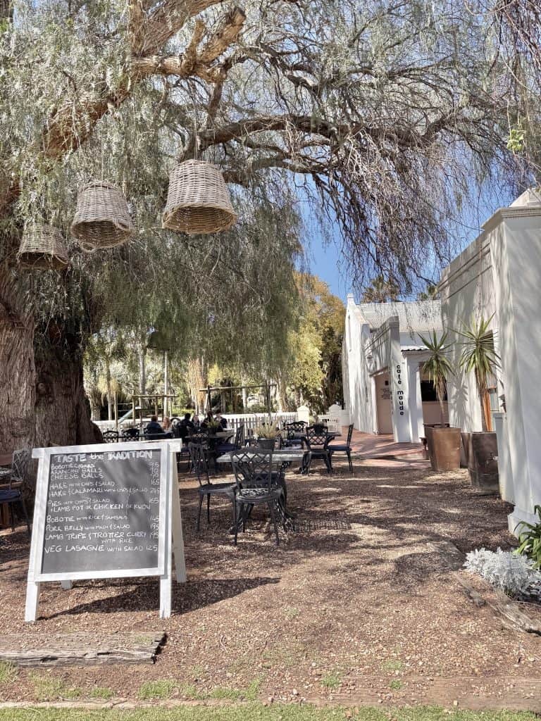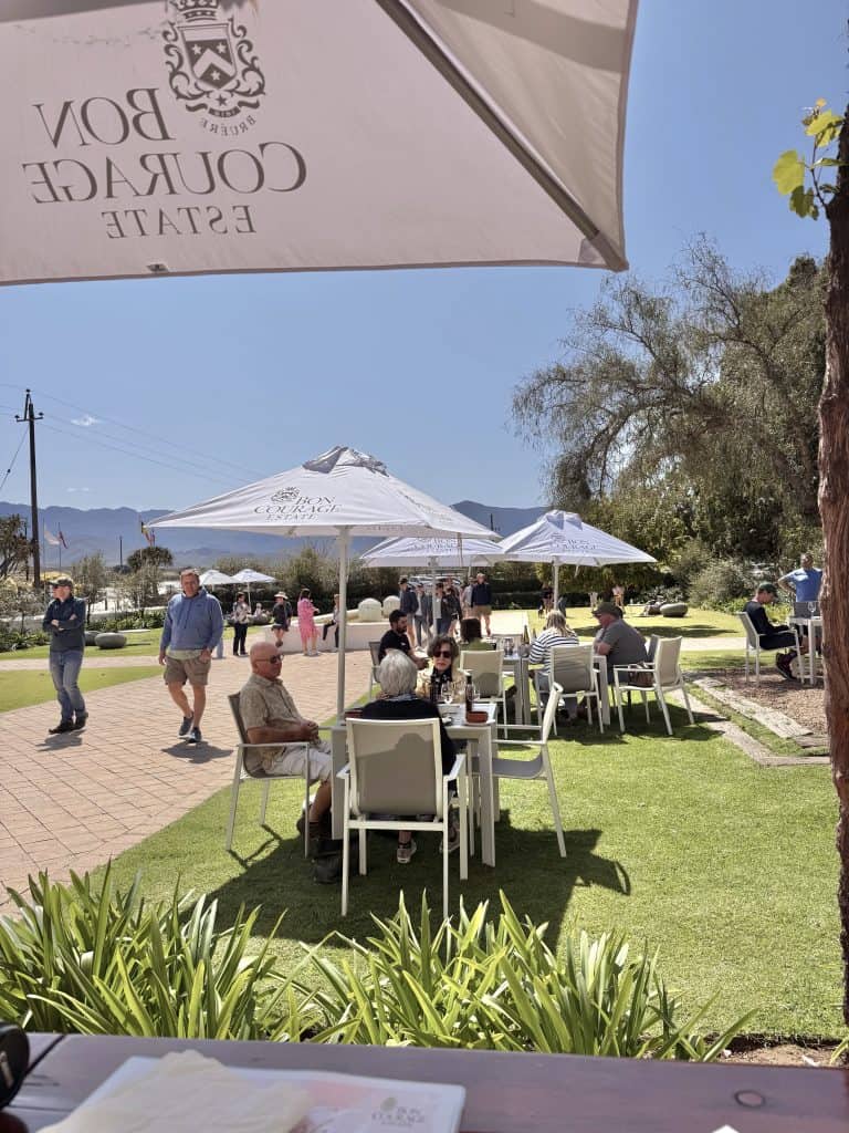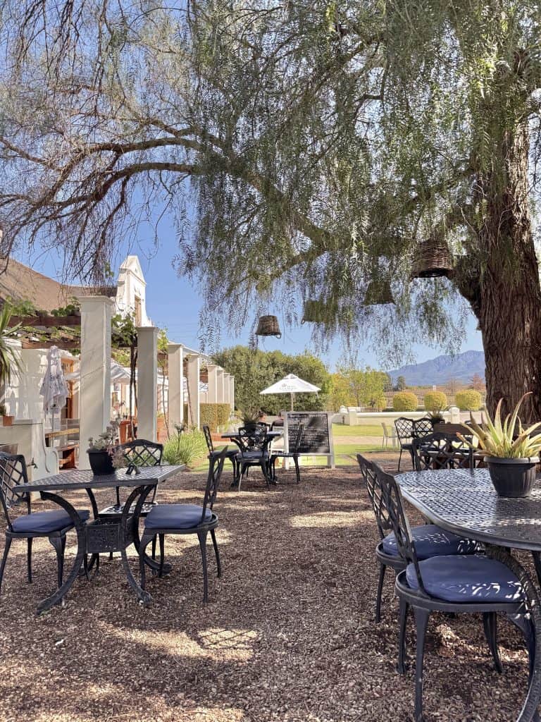 A trip to Robertson wouldn’t be complete without a stop at Bon Courage Wine Estate. This place is a wine lover’s paradise and it was the perfect starting point for our Taste the Tradition weekend. First things first, we decided to fuel up at Café Maude, a cosy restaurant located right on the estate. Picture this, you’re sipping your coffee or enjoying a glass of wine under the shade of a grand old African pepper tree. Yes, it’s as dreamy as it sounds!