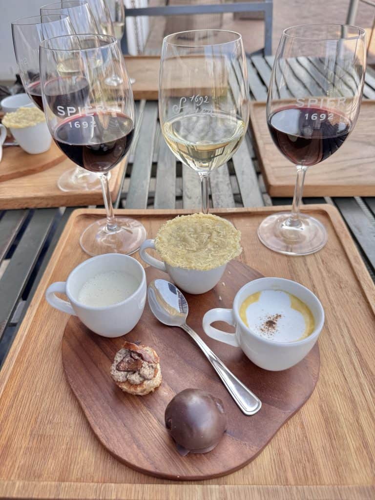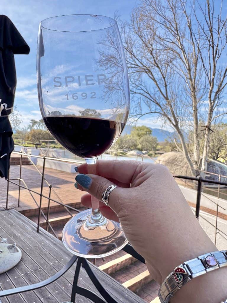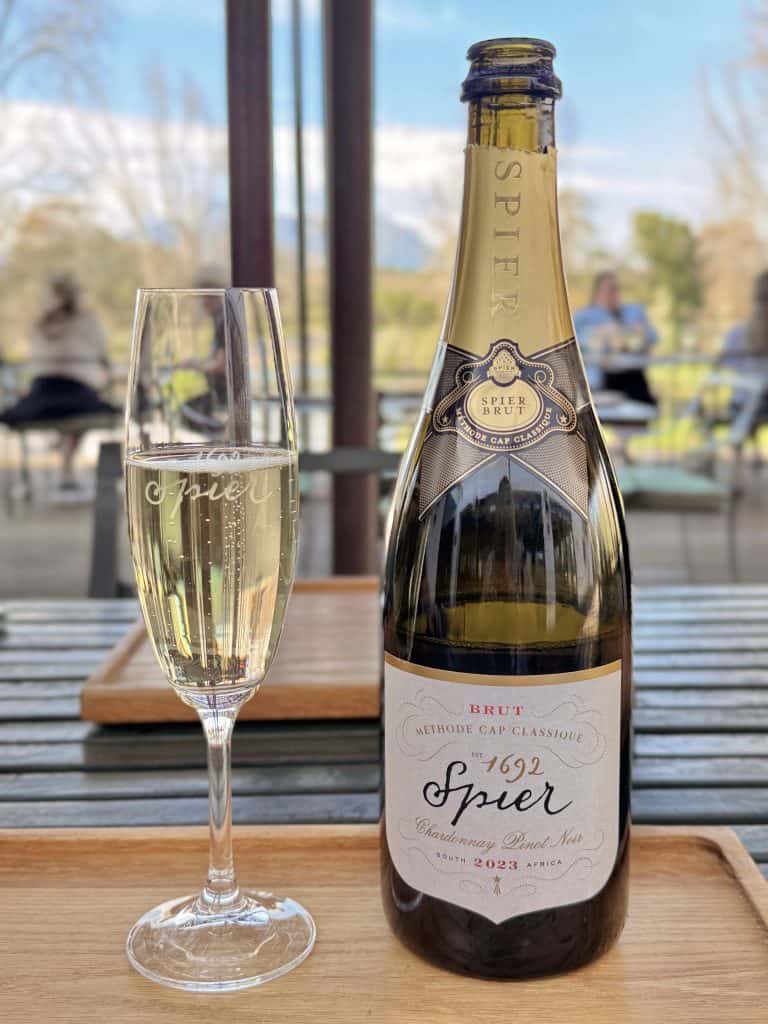 We began with a glass of Spier Chardonnay Pinot Noir Brut 2023. This Cap Classique is crisp and bright, with aromas of green apple and citrus followed by subtle brioche notes that add a touch of elegance and complexity.