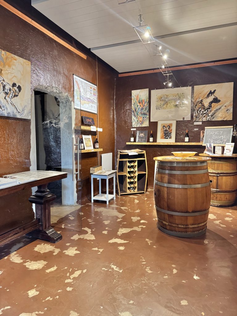 The tasting room is a destination in itself. Once an old wine vat built in 1906, it has been transformed into an intimate and creative space, filled with local artworks and merchandise from local businesses. Guests can enjoy two different tasting options. The Standard tasting features five wines. The Alpha tasting is a premium experience showcasing their flagship wines. Available for groups of four and more with a complimentary cheese board to complete the experience.