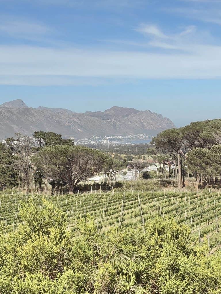 We caught up with Marketing Manager, Thea van der Merwe, who drove us around the farm and sharing insights and stories along the way. We went all the way to the top and the view was unforgettable. The air was filled with the smell of fynbos, while gardens of indigenous plants burst with colour. The panoramic view of False Bay stretches endlessly, benefitting from the sea breezes they get great minerality and acidity in their wines.