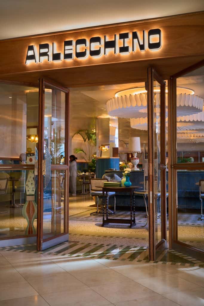 Breakfast at Arlecchino (8:00am–12:00pm) spans light, fruit?forward bowls to indulgent Italian?inflected classics. The Chia & Acai Bowl layers mixed berry and acai sorbet with yoghurt, chia, frozen blackberries, sweet cherries, and a granola tuile. The Panettone French Toast, served with mascarpone and crème anglaise, offers a more decadent start. The Italian Scramble – eggs with feta, tomato, peppers, bacon, spring onion, and salsiccia – anchors the savoury selection.